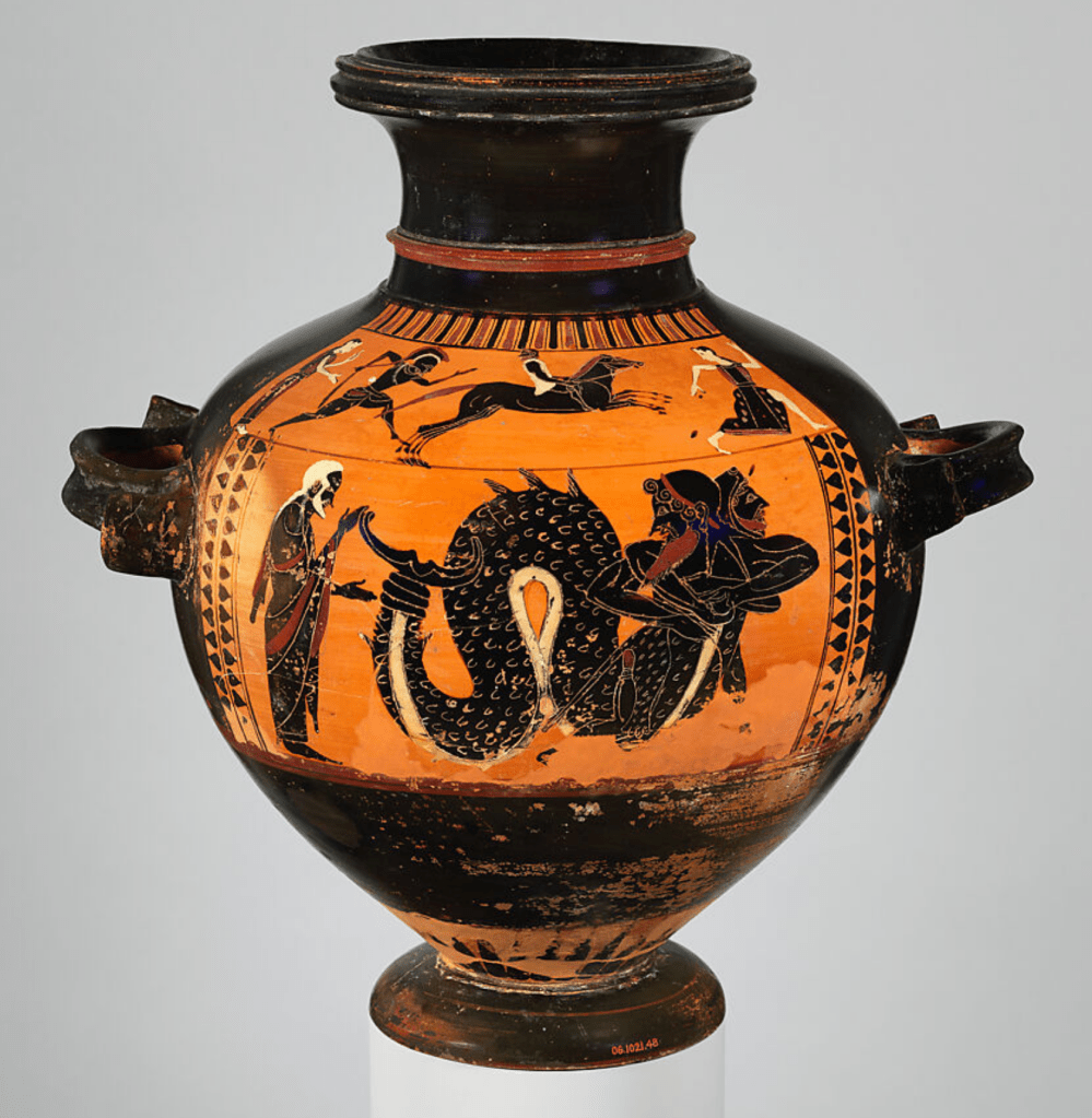 Color version of a mid-6th century BCE hydria featured in the paper (fig. 5, p. 179). It shows Heracles wrestling Triton, while Nereus watches. Image found here.